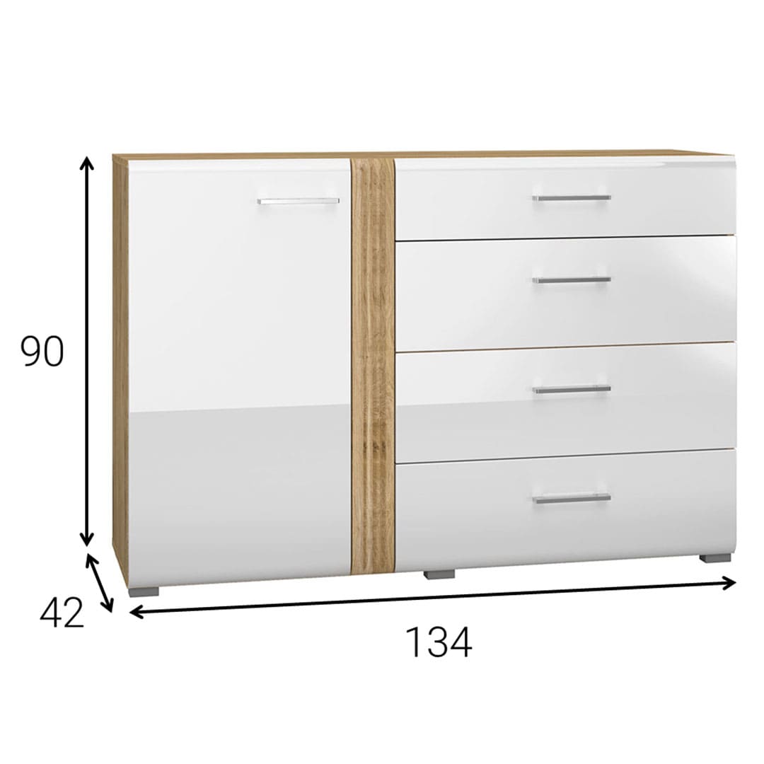 Komoda biała połysk + Artisan 134 cm CAPRI – bestseller