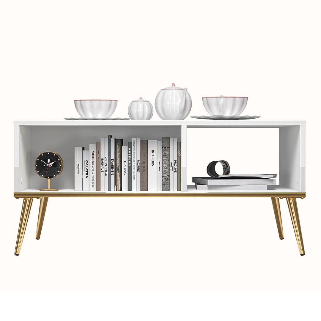 Stolik kawowy biały / złoty 90 cm ATHENA
