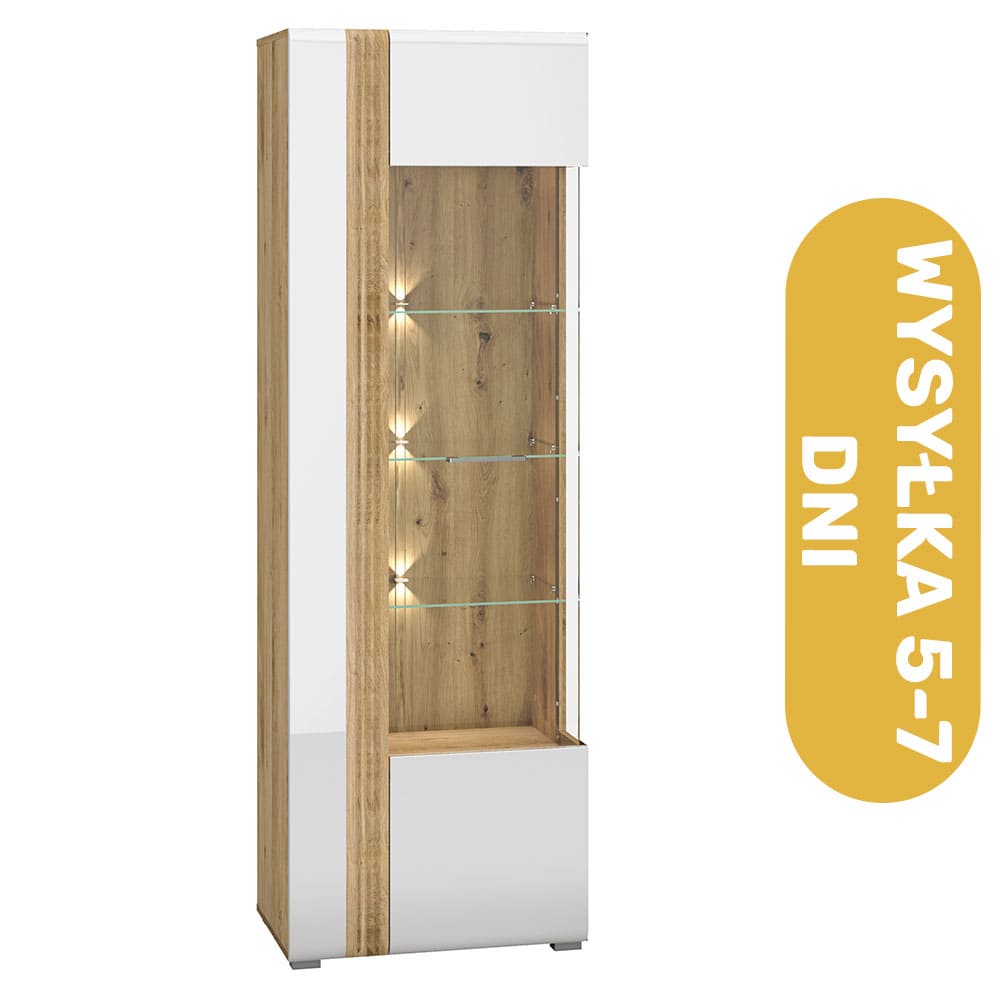 Witryna biały połysk + dąb 65 cm LED CAPRI Prawa