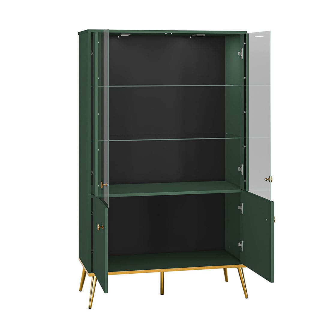 szklane drzwi, w środku 2 szklane półki, 2 x drzwi pełne
