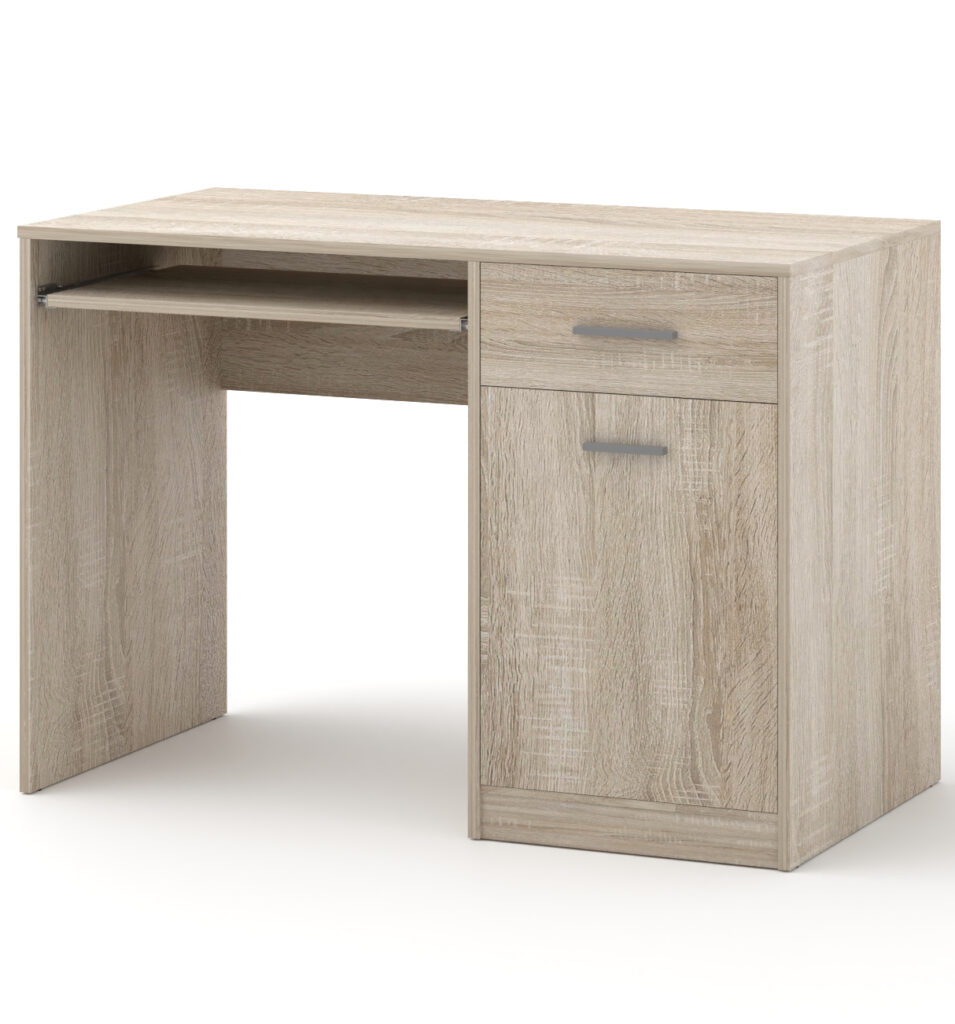 • Posiada 1 szufladę, 1 x szafkę (w środku 2 półki) i wysuwaną półkę na klawiaturę