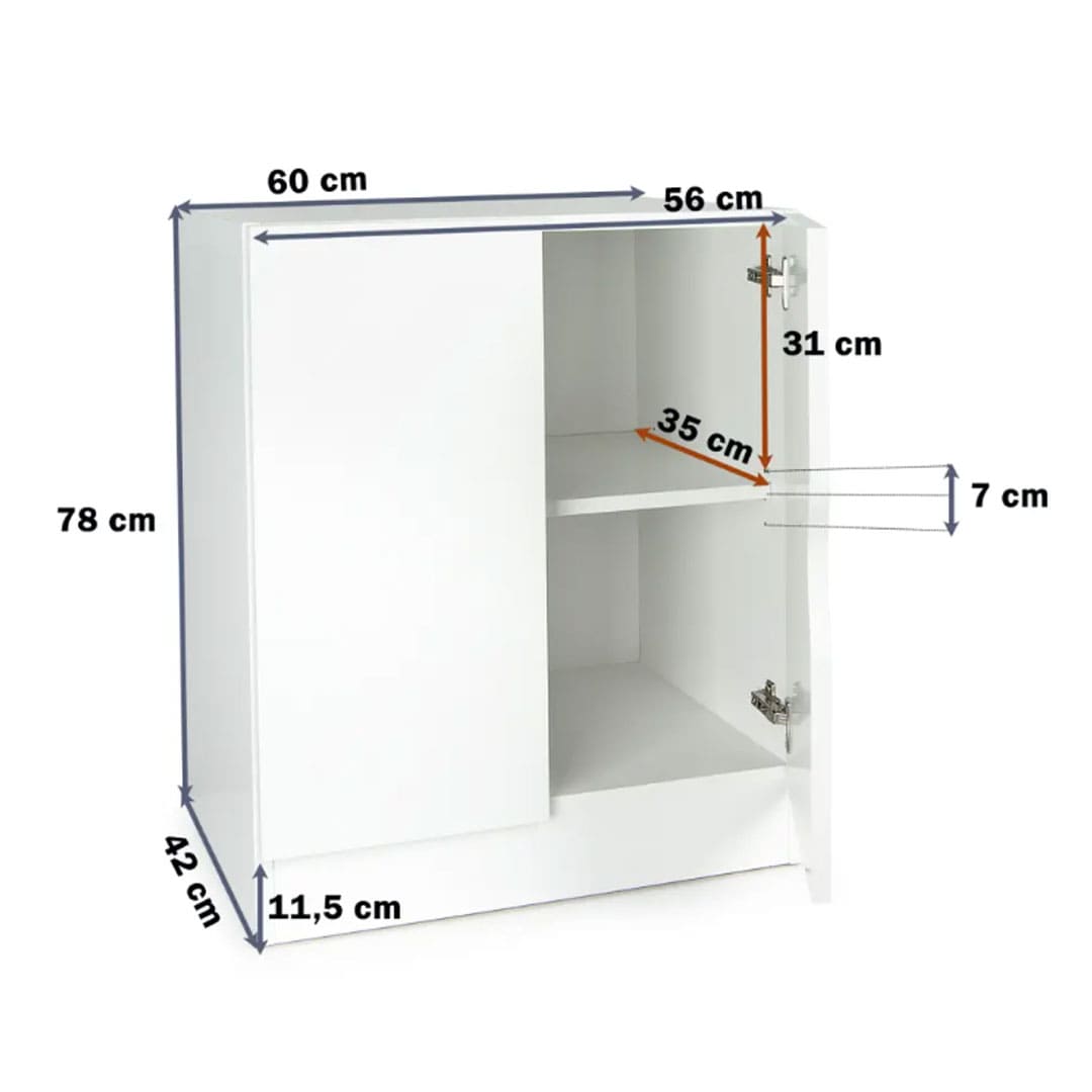 • szerokość: 60 cm, głębokość: 42 cm wysokość: 78 cm