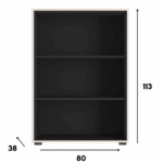 Trzy otwarte półki oferują miejsce na dokumenty, książki, akcesoria biurowe lub dekoracje. To mebel, który pozwala zorganizować przestrzeń, jednocześnie stanowiąc subtelny element wystroju wnętrza. Dzięki uniwersalnemu wyglądowi komoda może być wykorzystywana zarówno w profesjonalnym biurze, jak i w nowoczesnym salonie czy pokoju dziennym.