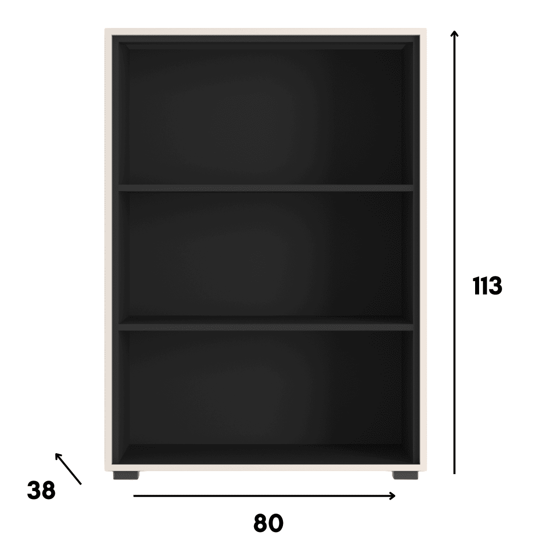 Ta nowoczesna komoda otwarta z trzema przestronnymi półkami to funkcjonalny i stylowy mebel, idealny do biura, salonu, domowego gabinetu czy przestrzeni coworkingowej. Wykończenie w eleganckim połączeniu kaszmiru z czernią w macie doskonale wpisuje się w obecne trendy wnętrzarskie – stonowane kolory, prostota formy i wysoka jakość wykonania.