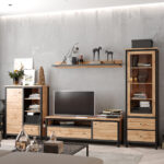 Zestaw mebli CHOS odzwierciedla współczesne osiągnięcia w produkcji meblarskiej. Pozwala stworzyć wnętrze komfortowe i funkcjonalne, bez nadmiernego obciążania przestrzeni. Kolekcję wyróżniają proste formy, przemyślany design i nowoczesna użyteczność. Stylowe uchwyty podkreślają geometryczny charakter mebli, a ciepły odcień drewna i jego wyrazista faktura zostały zrównoważone graficznymi akcentami.