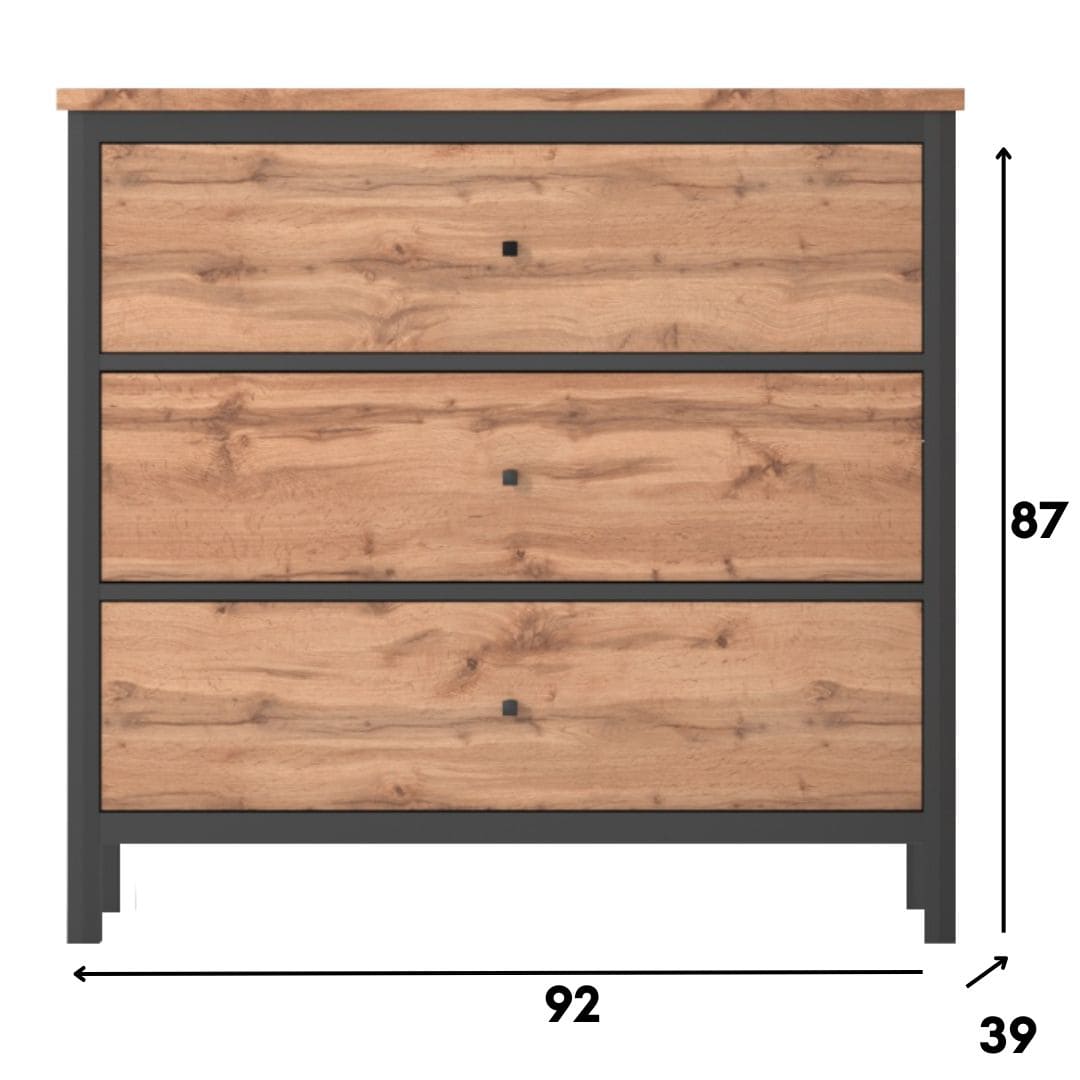 Komoda z szufladami dąb tacho/czarny 92 cm CHOS