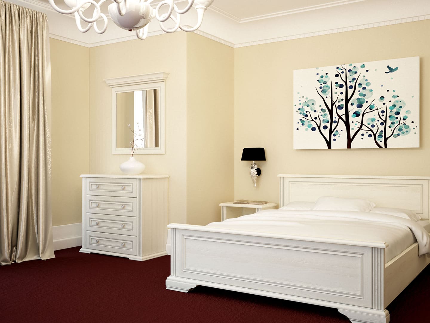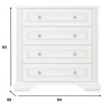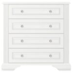 Cztery pojemne szuflady gwarantują przestrzeń na ubrania, tekstylia czy drobiazgi, które warto mieć pod ręką. Dzięki temu komoda staje się uniwersalnym rozwiązaniem zarówno do sypialni, jak i do salonu, garderoby czy przedpokoju. Jej geometryczna bryła wprowadza spokój, a jasna kolorystyka rozświetla pomieszczenie, tworząc atmosferę elegancji i świeżości.