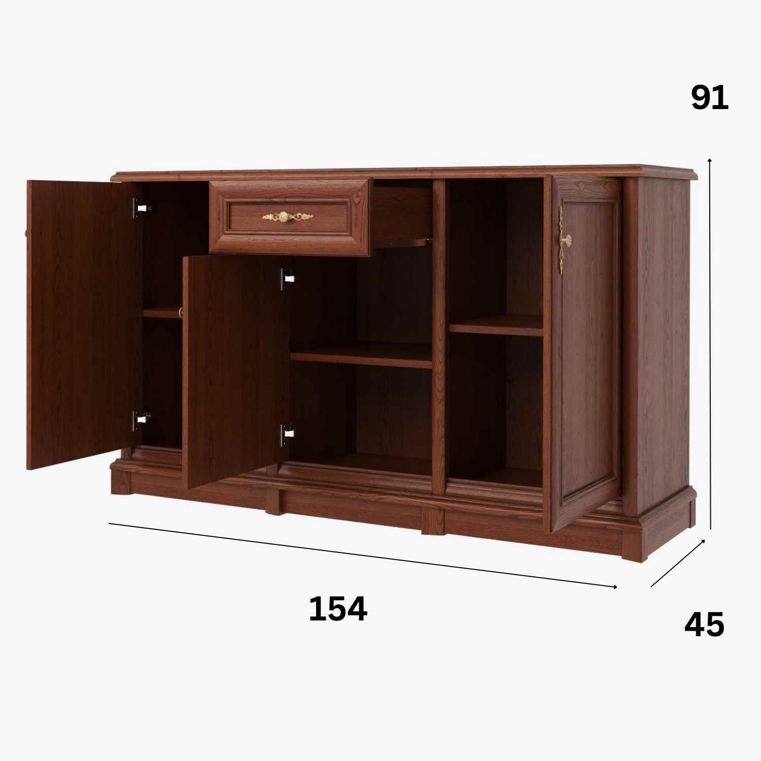 Komoda SONATA zachowuje proporcje charakterystyczne dla elegancji inspirowanej tradycją. Rysunek drewna w orzechowym kolorze nadaje meblowi wyraz i sprawia, że staje się on ciekawym akcentem zarówno w salonie, jak i w sypialni.