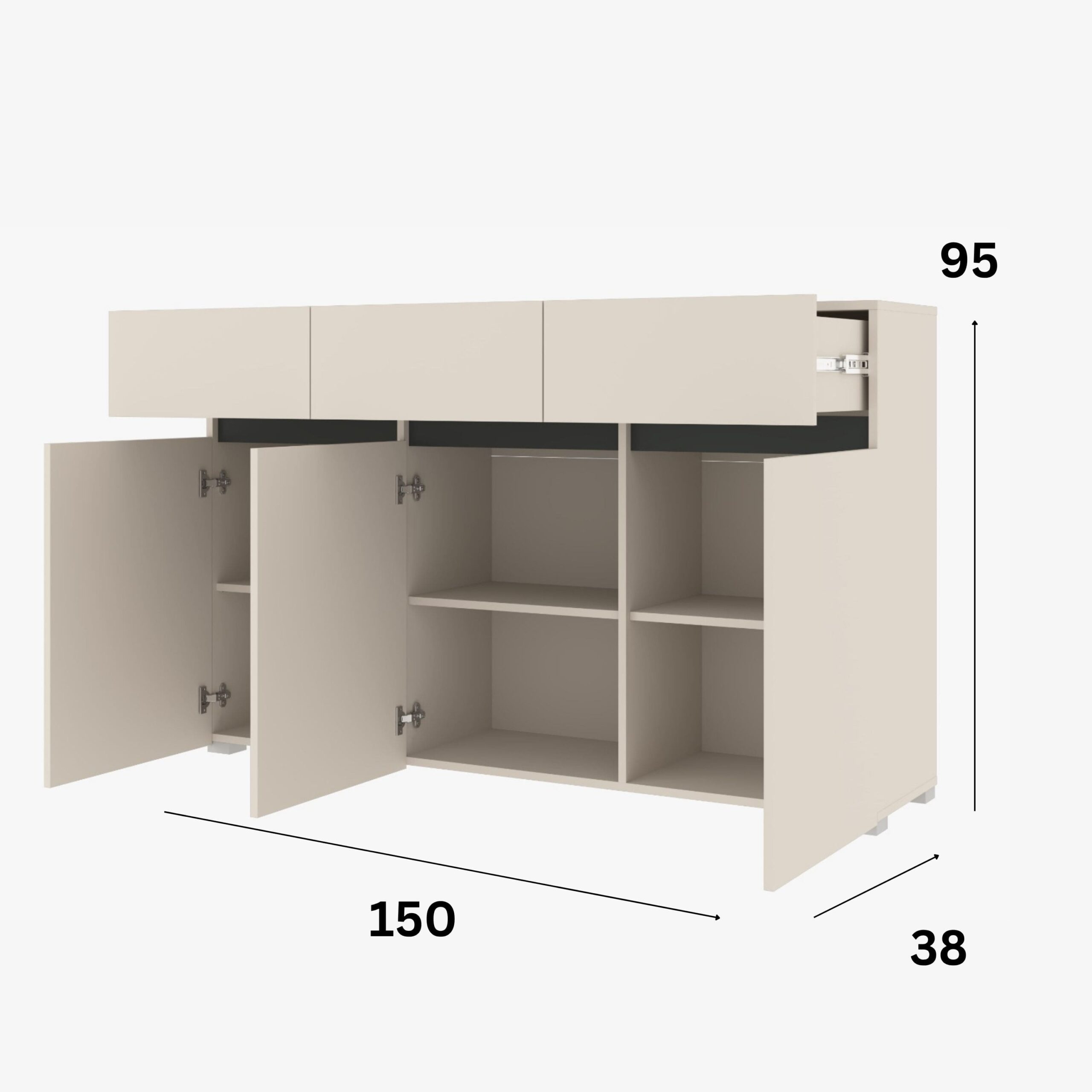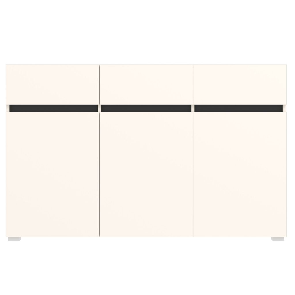 Komoda LONDON to propozycja dla tych, którzy cenią nowoczesny minimalizm w eleganckim wydaniu. Jej kaszmirowa kolorystyka w zestawieniu z antracytowymi detalami tworzy harmonijną całość, która znakomicie odnajduje się w przestronnych i uporządkowanych wnętrzach.