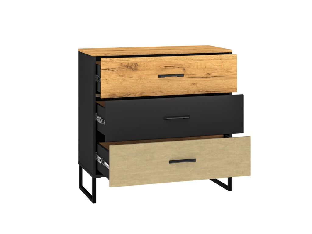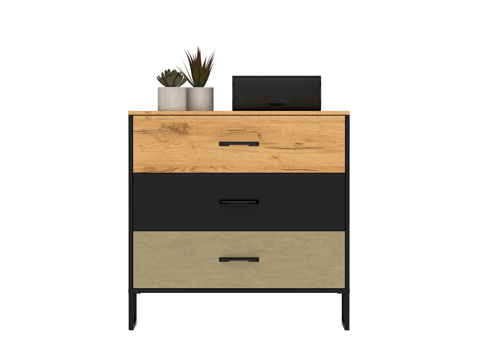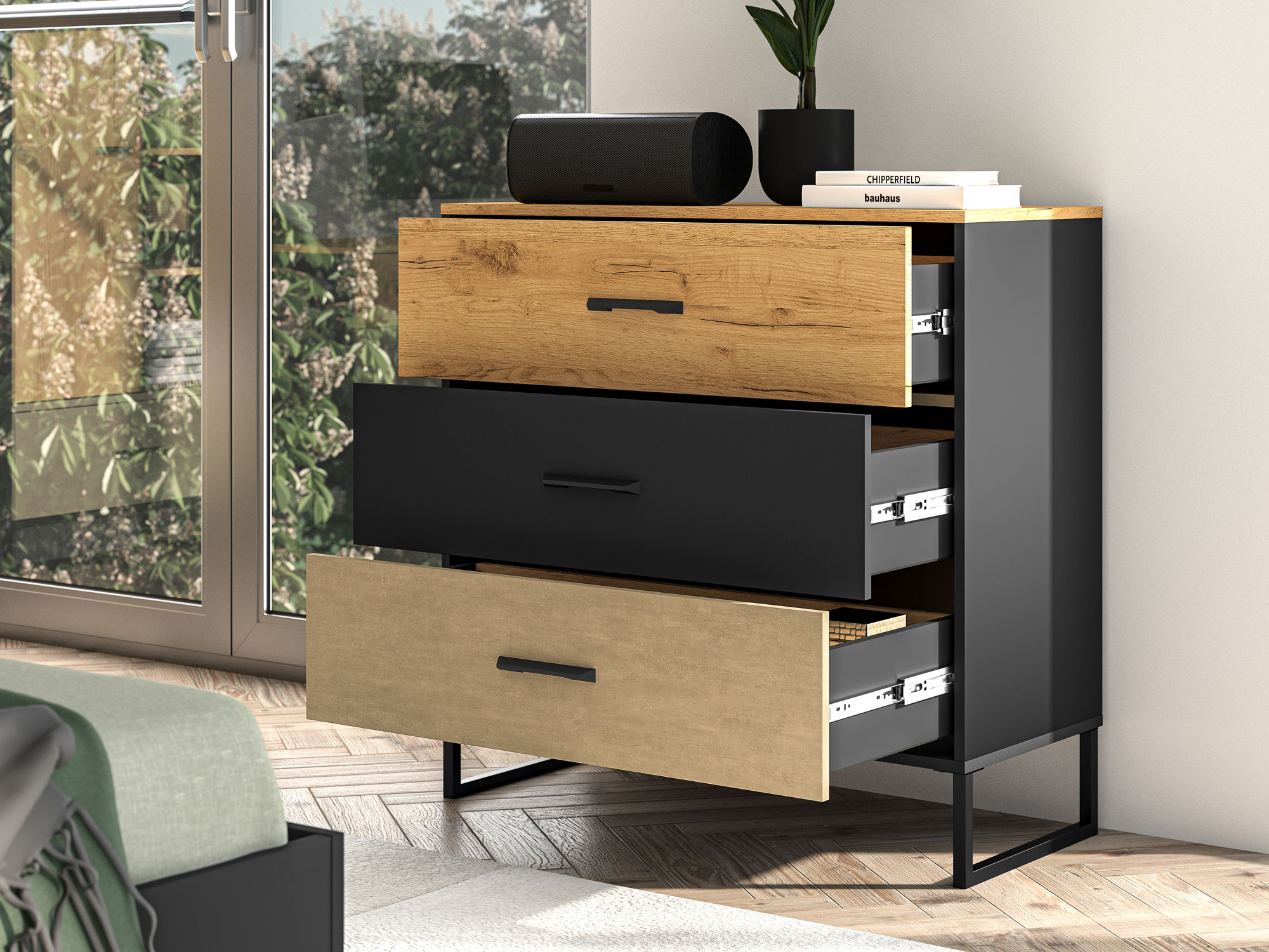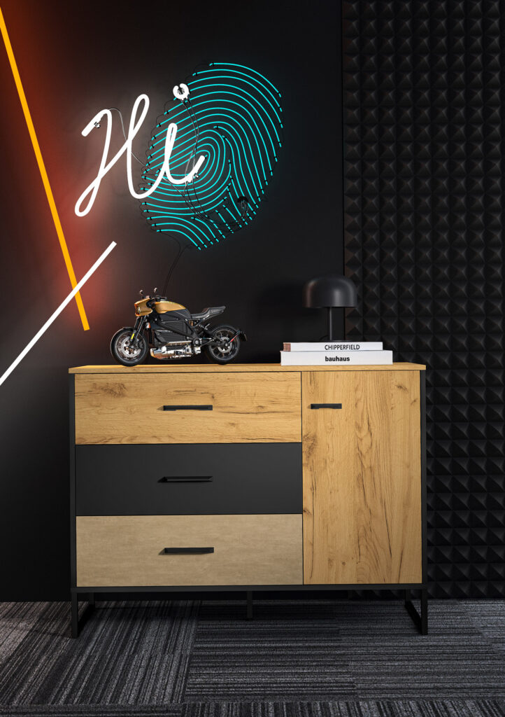 kolory: Dąb Craft Złoty + Czarny + Stal Premium