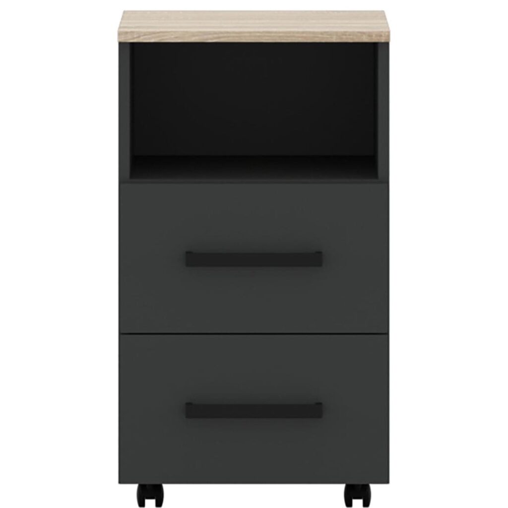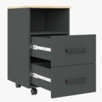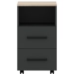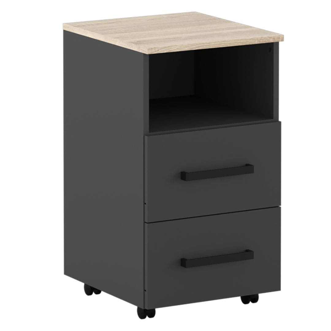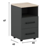 Kontenerek w kolorach dąb sonoma oraz antracyt to praktyczne i stylowe rozwiązanie do każdego wnętrza. Jej kompaktowy rozmiar sprawia, że świetnie sprawdzi się zarówno w przedpokoju, pokoju dziennym czy biurze. To idealny wybór dla osób szukających funkcjonalnych mebli do przechowywania, które jednocześnie wpisują się w nowoczesne trendy wnętrzarskie.