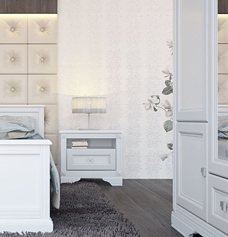 Świetnie odnajdzie się w sypialniach w stylu klasycznym, romantycznym, prowansalskim lub nowoczesnym z nutą elegancji. To idealna baza dla jasnych aranżacji, ale również świetnie kontrastuje z kolorami ziemi, grafitem czy pastelami.