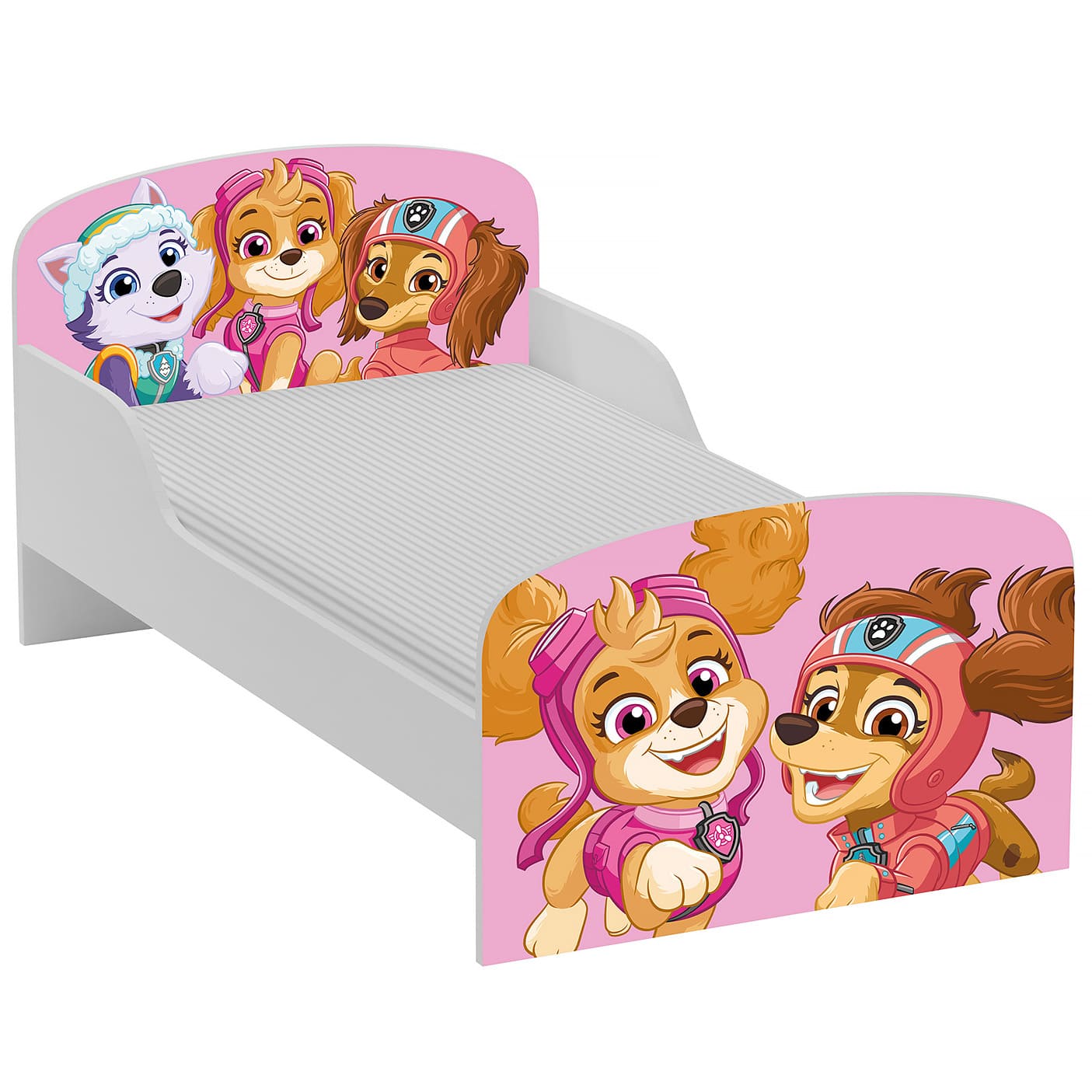Z przodu i z tyłu łóżka znajdują się kolorowe nadruki przedstawiające Skye, Liberty i Everest – bohaterów uwielbianej przez dzieci bajki „Psi Patrol”. Zostały one wykonane bezpiecznymi farbami i utrwalone światłem UV, co zapewnia długotrwałość i odporność na blaknięcie.