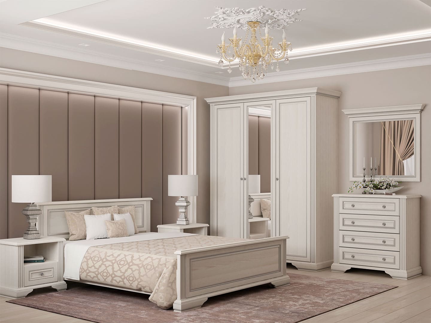 Łóżko z kolekcji WINDSOR to propozycja dla tych, którzy szukają równowagi między klasycznym wdziękiem a wygodą codziennego użytkowania. Rama utrzymana w subtelnym białym kolorze z delikatnymi frezowaniami tworzy wyważoną, spójną kompozycję — wystarczająco ozdobną, by nadać sypialni charakteru, i jednocześnie na tyle oszczędną, by współgrać z różnymi dodatkami.