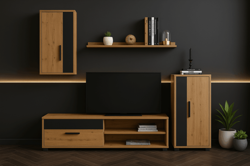 🔹 Dbamy o Detale: Wysoka jakość wykonania oraz dbałość o najmniejsze detale sprawiają, że meblościanka BARATO przyciąga wzrok i jest długoletnim towarzyszem w Twoim domu.