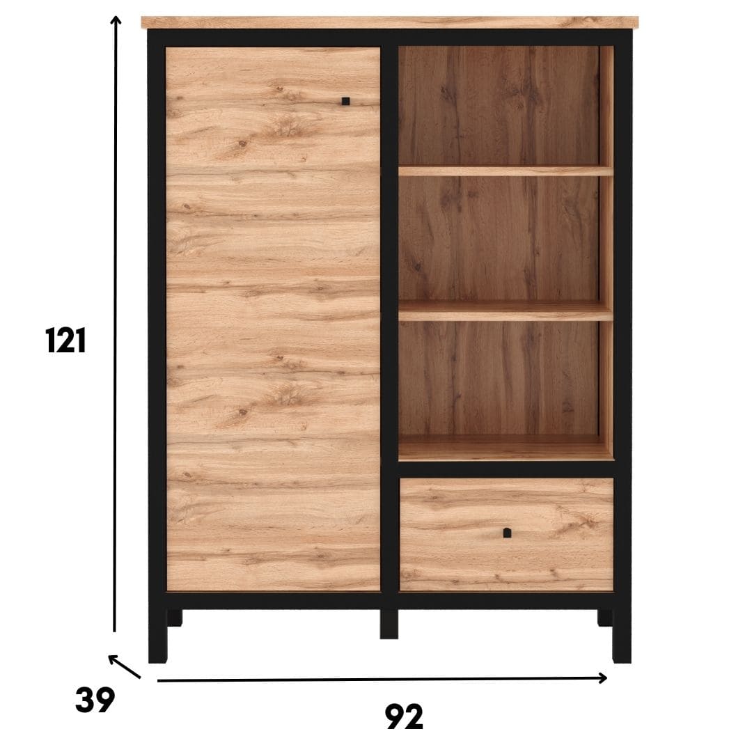 Regał częściowo zamykany dąb tacho/czarny 92 cm CHOS
