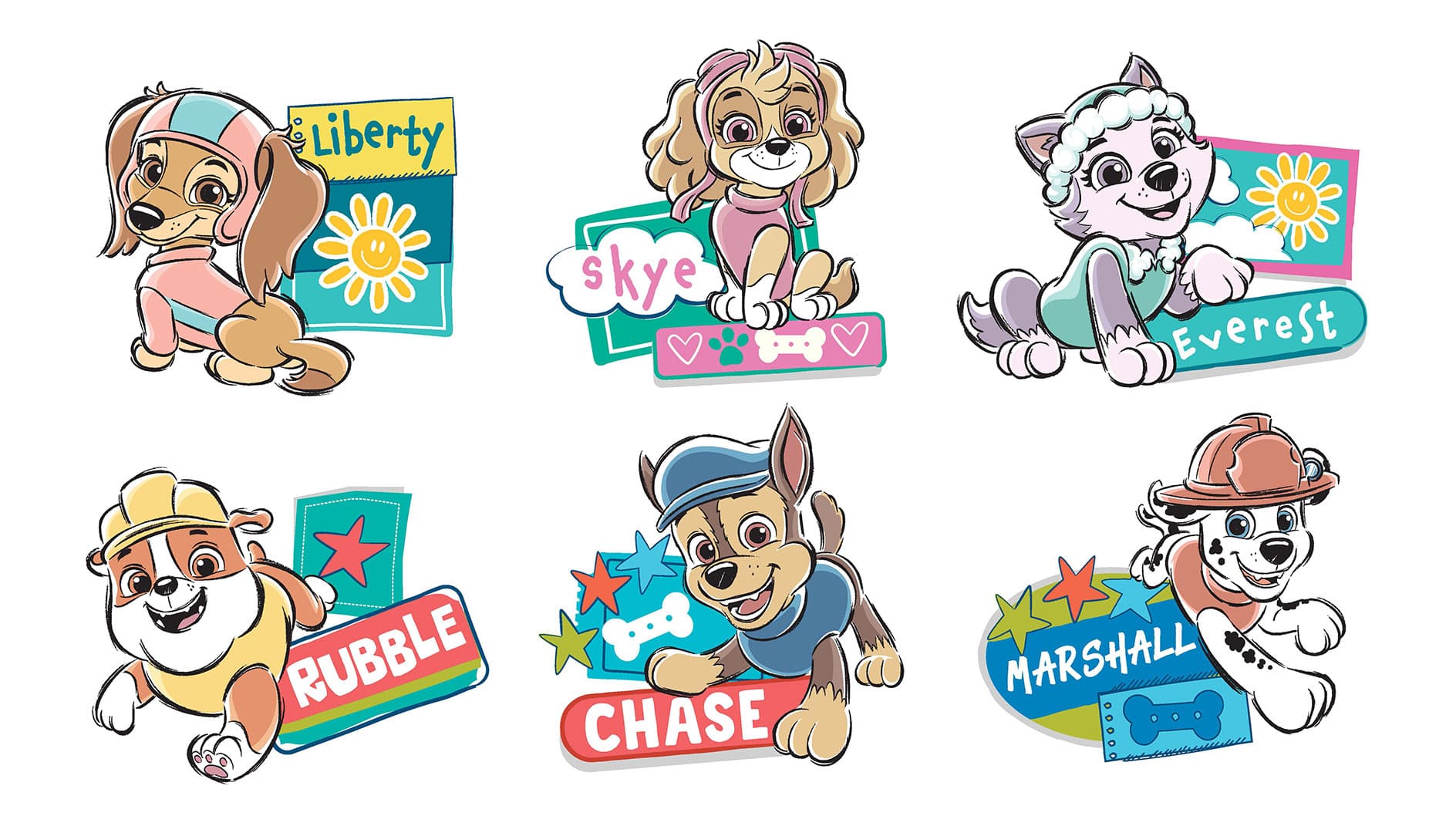 górna pokrywa skrzyni przestawia sześć psiaków z bajki