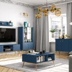 Szafka RTV kredowy niebieski złota 160 cm TV 70 cali INDYGO