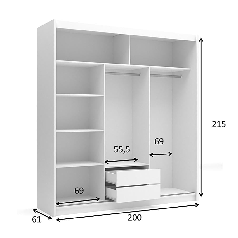 Szafa przesuwna z lustrem dąb sonoma 200 MARIO