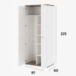 We wnętrzu szafy znajduje się sekcja z drążkiem na kurtki i płaszcze oraz 5 pojemnych półek, dzięki czemu są idealne do przechowywania ubrań, pościeli i dodatków. To meble, które wprowadzają do sypialni porządek, światło i przytulny charakter skandynawskiego designu.
