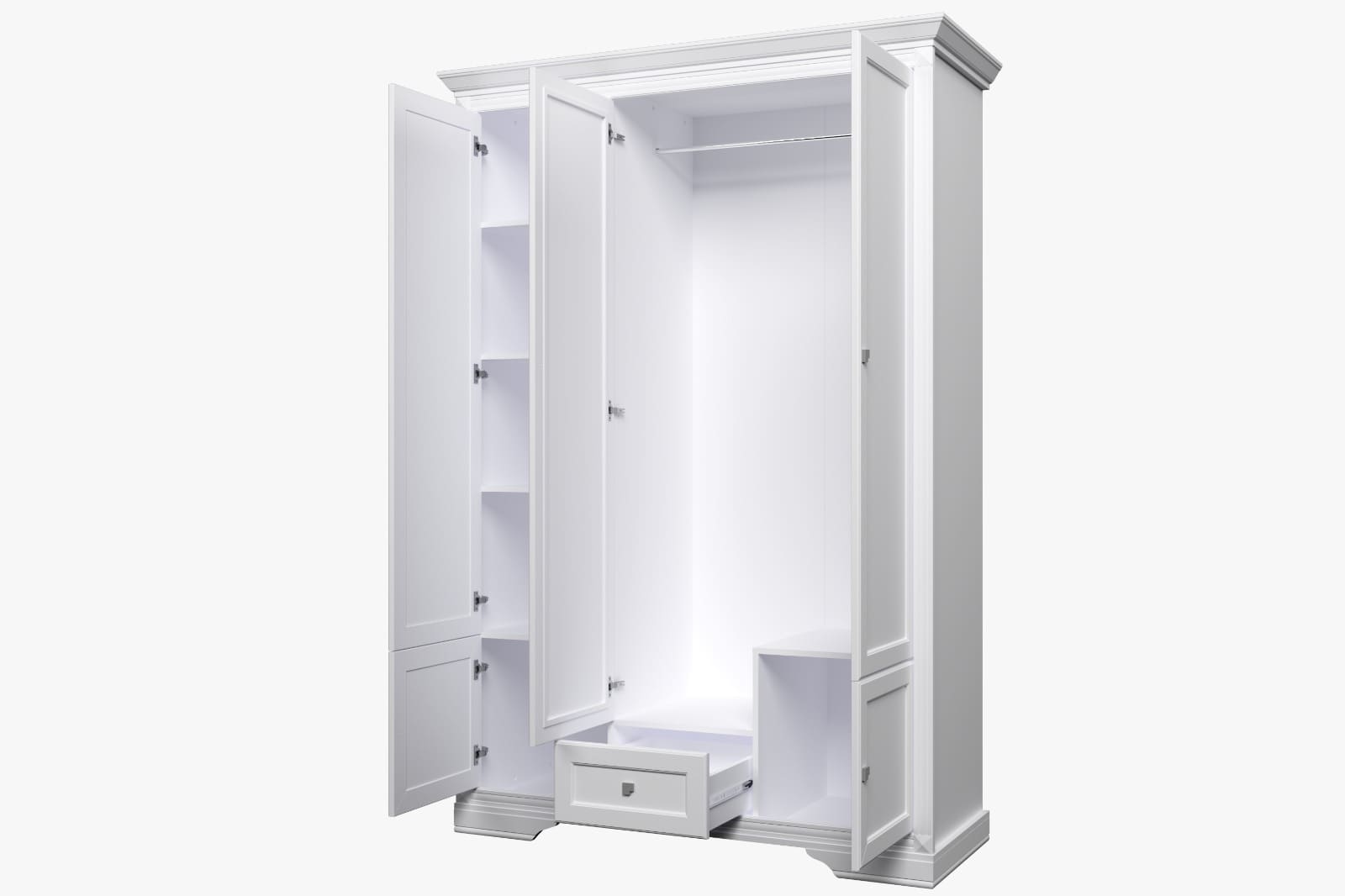 Poznaj szafę Kleo 3D z lustrem – wyjątkowy mebel, który łączy w sobie klasyczną estetykę, praktyczne rozwiązania i najmodniejsze trendy wnętrzarskie. Wykonana w uniwersalnym, śnieżnobiałym kolorze, z ozdobnymi frezowaniami i solidnym wykończeniem, idealnie wpisuje się w potrzeby nowoczesnych domów i mieszkań. To propozycja dla osób, które szukają elegancji, ale nie chcą rezygnować z komfortu użytkowania.