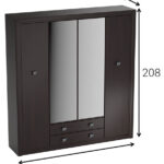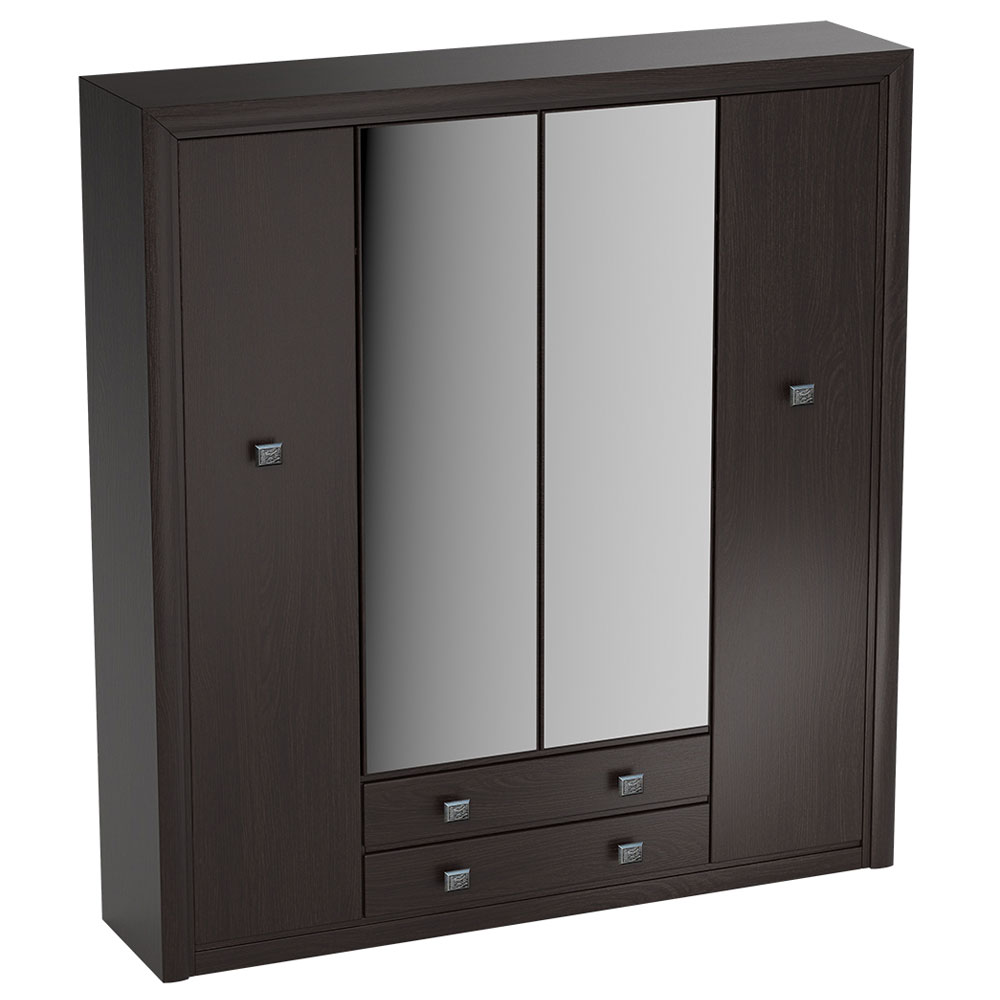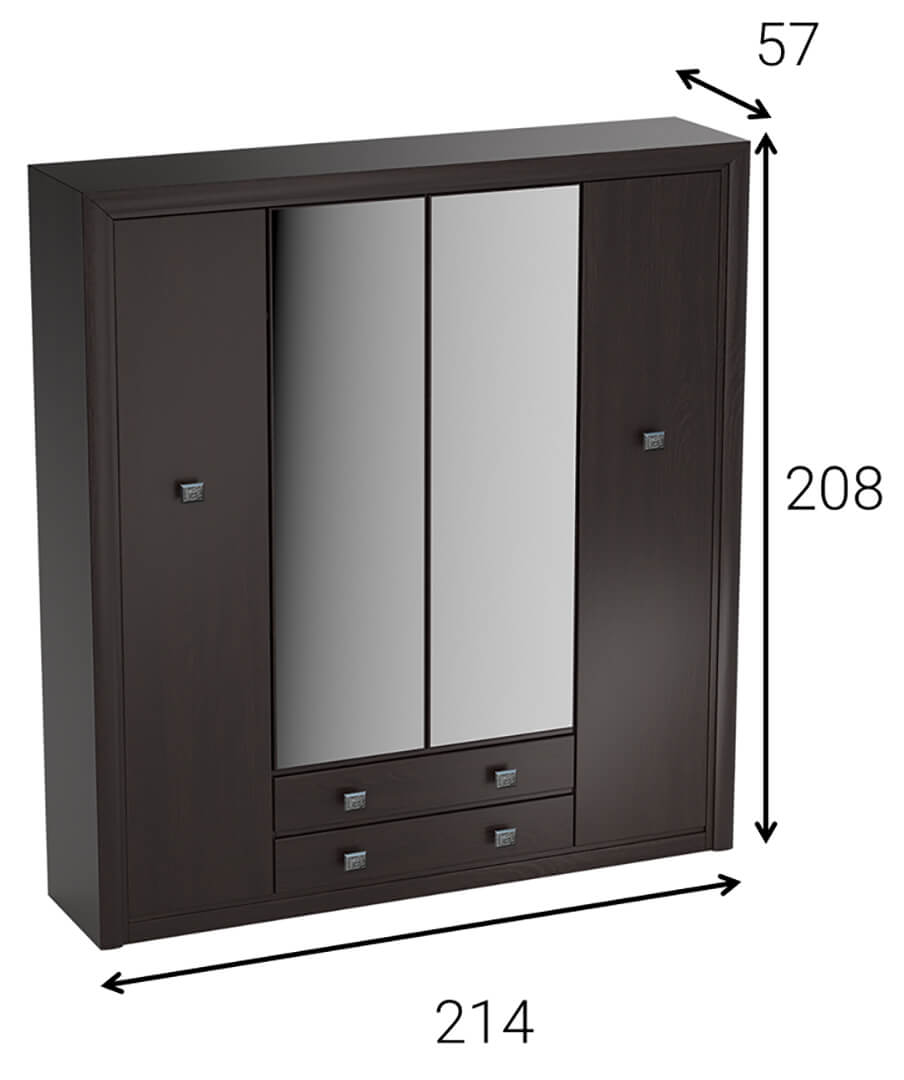 8 półek, 4 drzwi (2 środkowe z lustrem), 2 szuflady