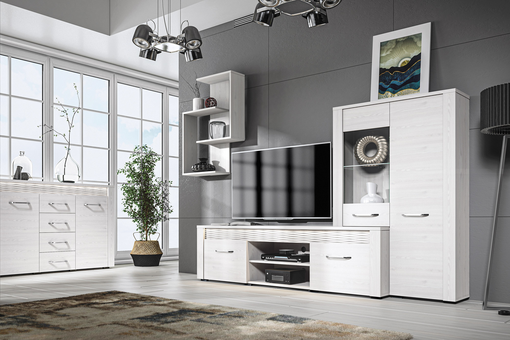 Szafka RTV LED sosna śnieżna 150 cm TV 65 cali OSLO
