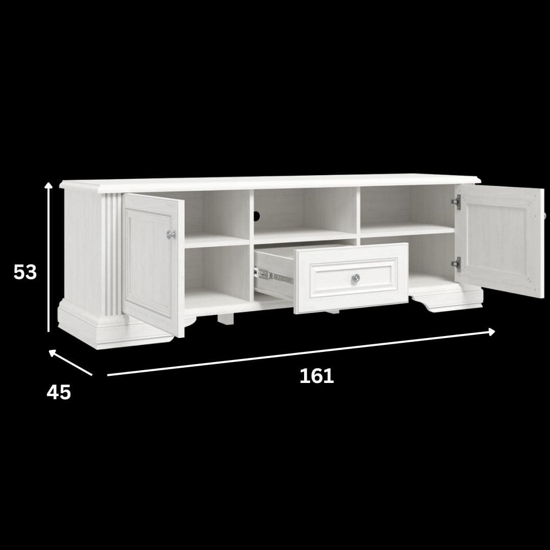 Szafka RTV w stylu klasycznym sosna śnieżna/popiół 161 cm WINDSOR