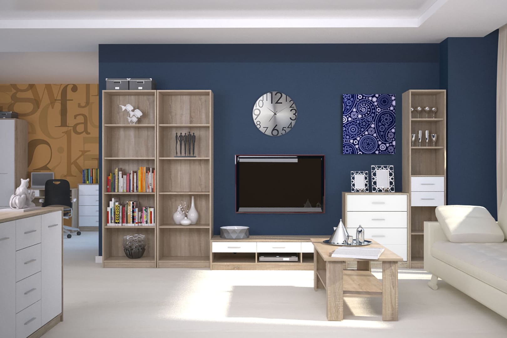 Otwarta konstrukcja sprawia, że mebel dobrze sprawdza się tam, gdzie liczy się łatwy dostęp do przechowywanych przedmiotów oraz wizualna lekkość zabudowy. Szafka wisząca do salonu lub przedpokoju pozwala eksponować książki, ceramikę lub drobne akcenty, stając się częścią ściennej kompozycji, a nie jej dominantą. Proporcje bryły sprzyjają spokojnemu odbiorowi wnętrza i zachowaniu równowagi między funkcją a estetyką.
