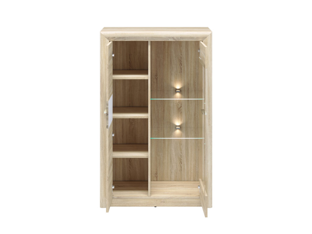 1 drzwi pełne, 1 drzwi szklane, 5 półek (w tym dwie szklane)