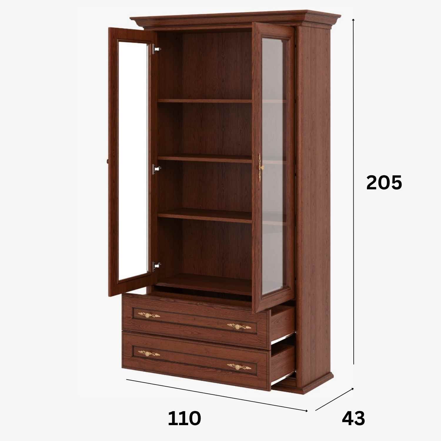 Dwudrzwiowa witryna SONATA przyciąga spojrzenia szklanymi frontami i lekko wygiętymi liniami charakterystycznymi dla mebli klasycznych. Wnętrze zaprojektowano tak, by rozświetlić ekspozycję przedmiotów, a jednocześnie stworzyć spokojne tło dla codziennych rytuałów. Orzechowa kolorystyka nadaje całości miękkości, która pięknie współgra z eleganckimi dodatkami.